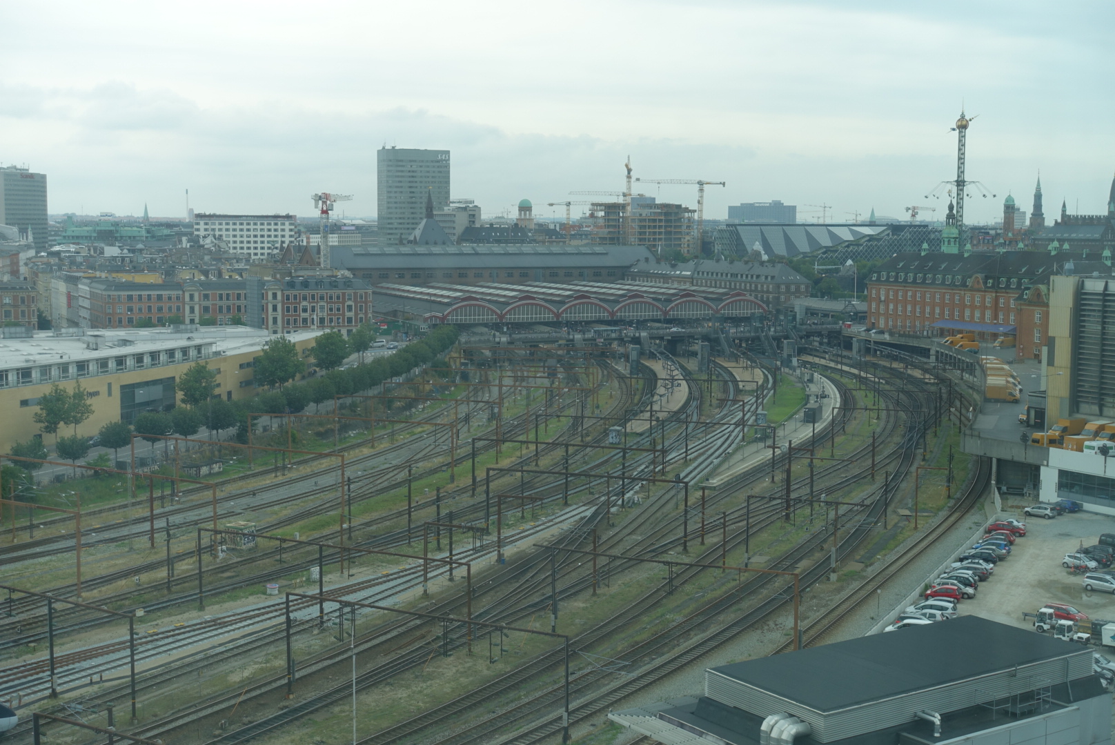 There is a nice view on the train station from the hotel room (Wakeup Copenhagen, Carsten Niebuhrs Gade).