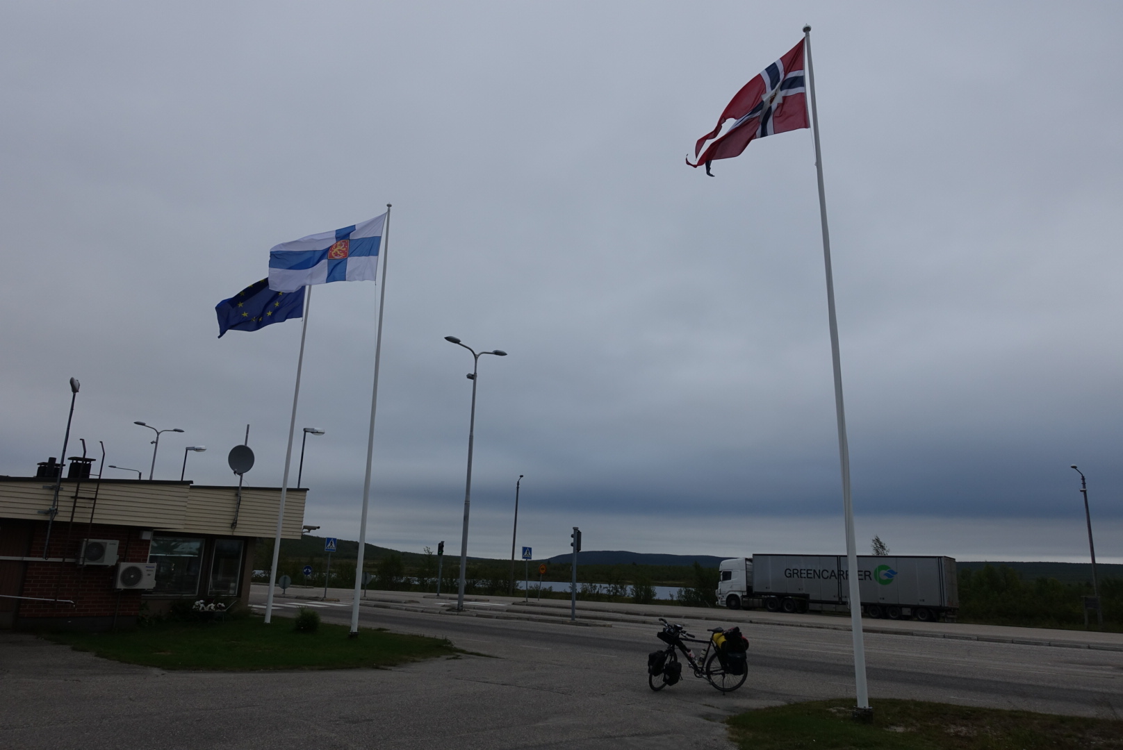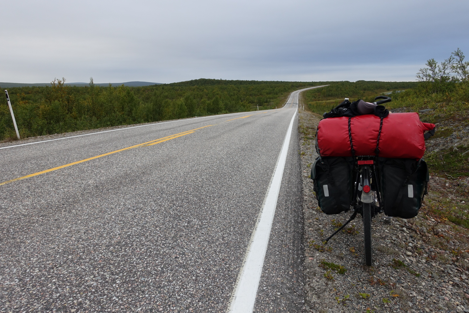 I started at 10:30 after repacking my bags. I moved the cooking equipment to the back and all the cold and rain gear to the front for easy access on the road. Actually, it was 11:30, since Finland is in another time zone, as it turned out. The bike computer and the phone automatically update their times, but not simultaneously – very confusing. It is also rather strange to cross another time zone while heading north.