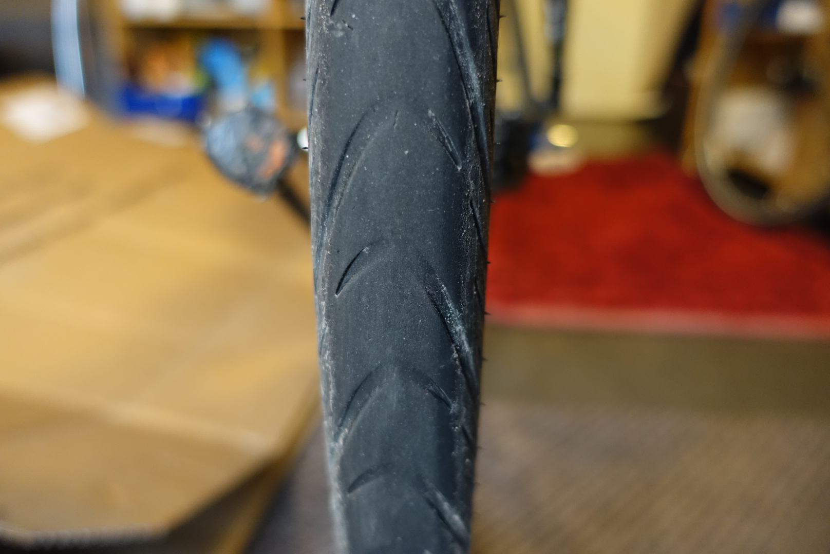 The rear tire had reached its lifetime.