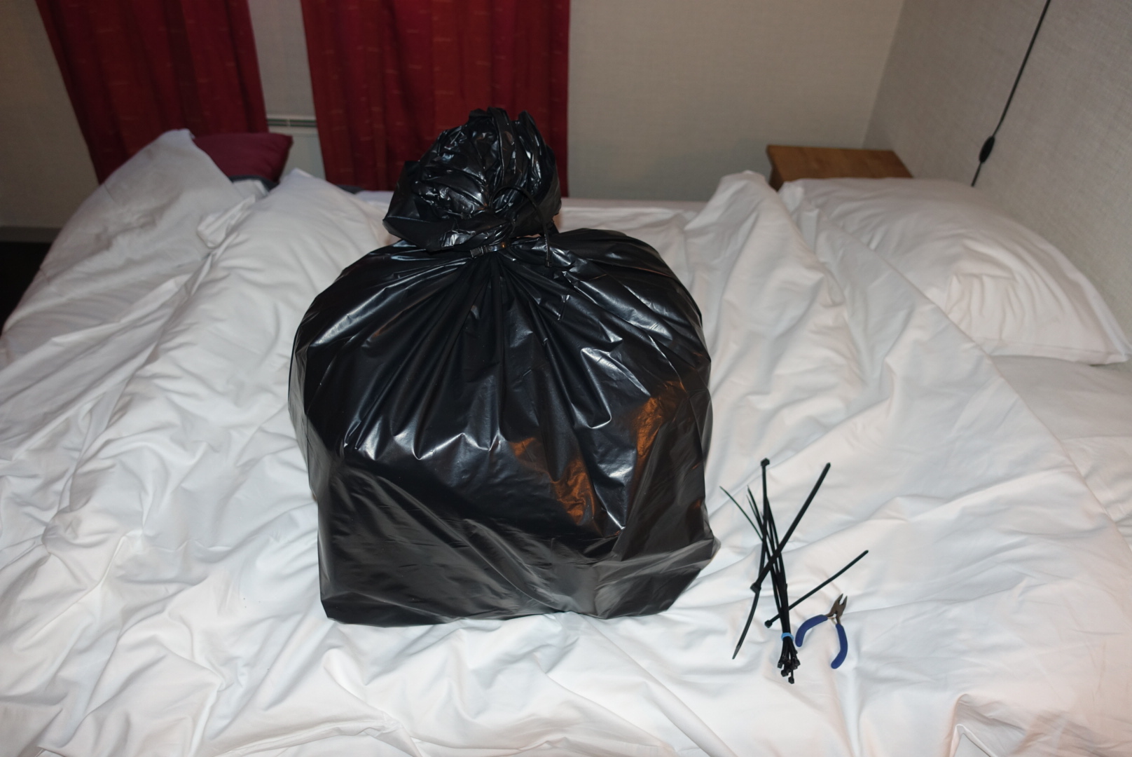 … and packed everything into three layers of waste bags, closed with zip ties. That thing qualifies as a single bag now, less than 23 kg – ready to fly.