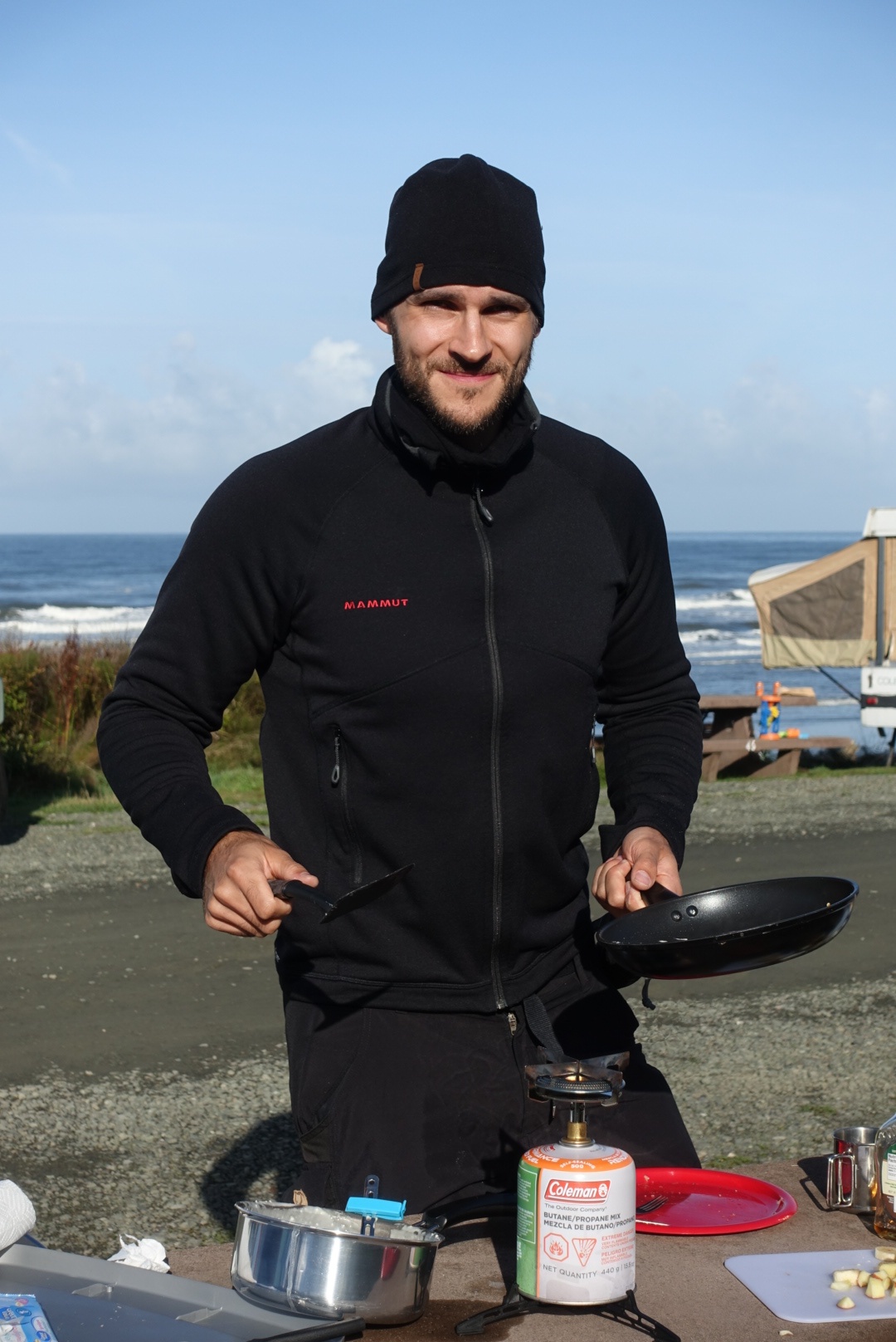 Since the dunes cast a shadow on our car, we moved to another, more sunny, vacant campsite whose prior occupants had left already. After friendly asking our neighbour to turn off the engine of his oversized RV, the stage was set for pancakes.