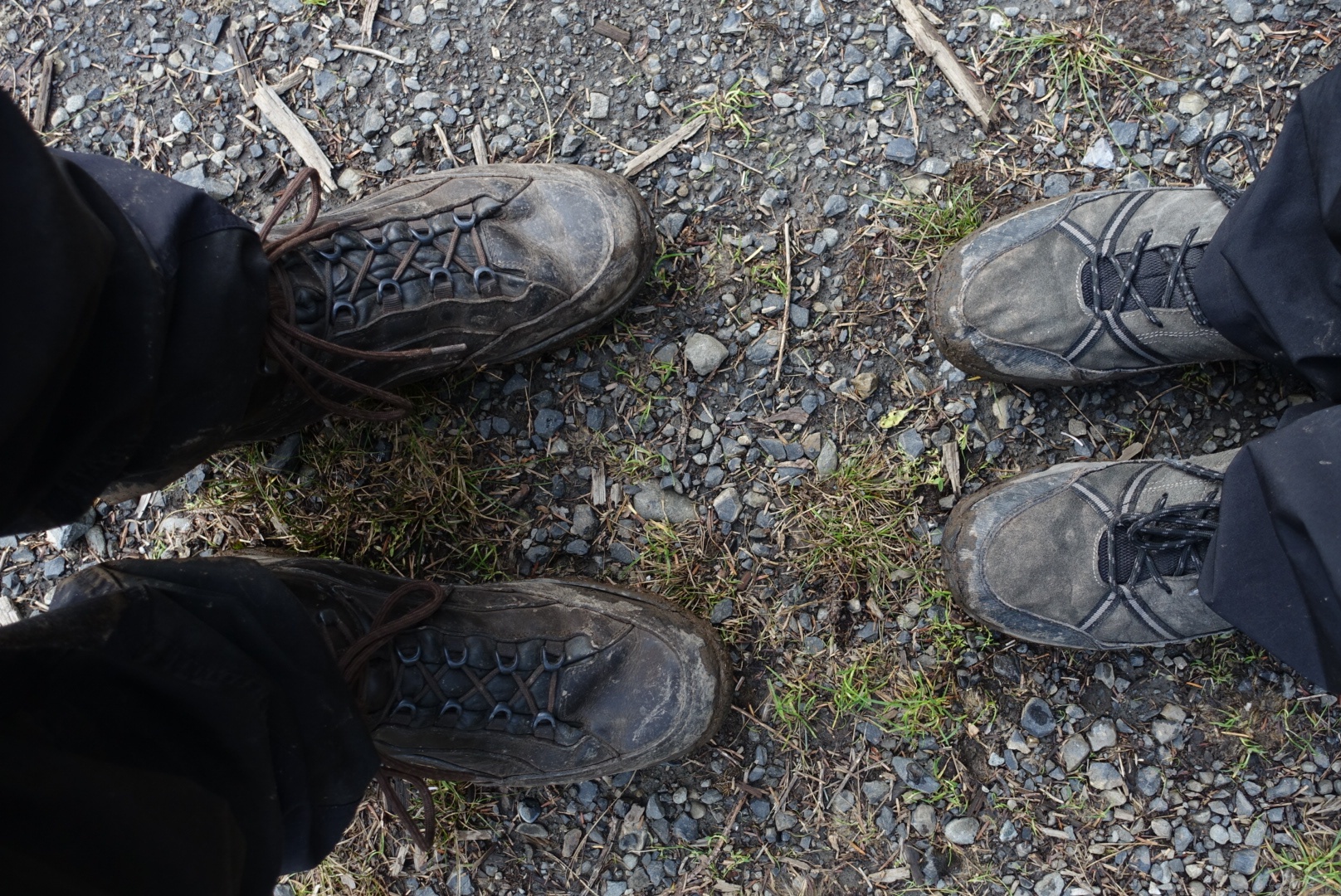 When we arrived at the van, it was already past 18:00, and our shoes reflected the muddiness of the trail.
