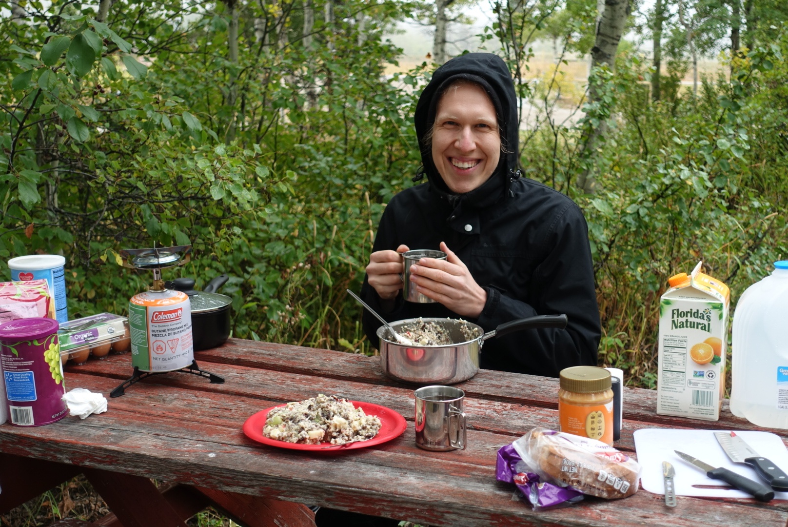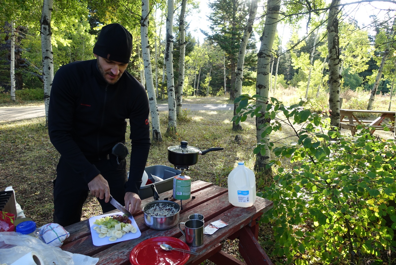 Problem solved. The blankets boosted our sleeping setup into the comfort zone. At prior cold mornings, I would just get up and start moving before losing too much body temperature. Today I didn’t feel like leaving my blanket-wrapped sleeping bag, knowing the cold that would await me. Marius was already working towards breakfast tea, but he usually falls asleep before me, while I still sort the day’s pictures and write a bit. I eventually got up as well – porridge duty.