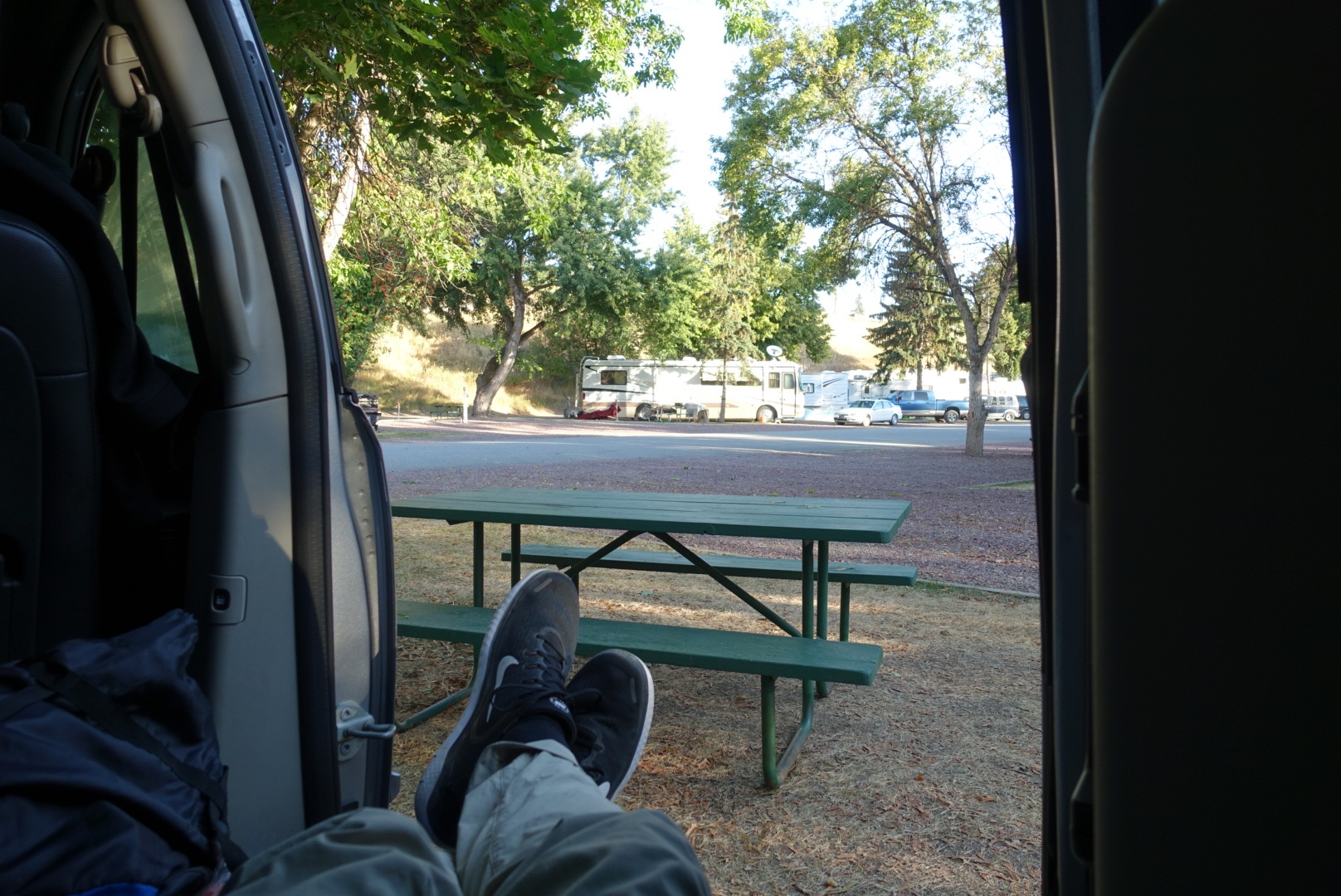 The basic plan for today is driving West. We start from Greenwood Village Campground and had multiple options in mind where exactly to go. The definite goal is Olympic National Park. Ideally we’ll have quick look at Seattle along the way. Since we decided to leave Glacier National Park one day ahead of the last version of the master plan, we figured we could visit Mount Rainier National Park southeast of Seattle as well. But first things first.